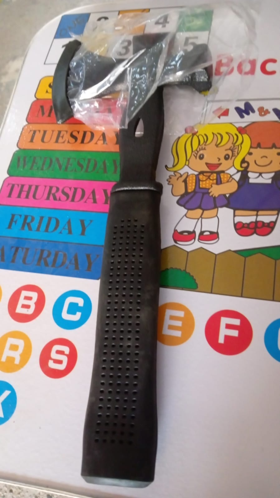 - 3 in 1 multifunctional axe made of malleable iron 33 cm long.