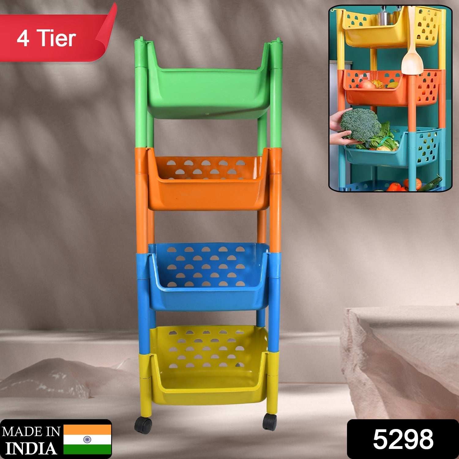5298 4 Layers Fruit & Vegetable Basket Trolley Plastic for Home and Kitchen Fruit Basket Storage Rack Organizer Holders Kitchen Trolley