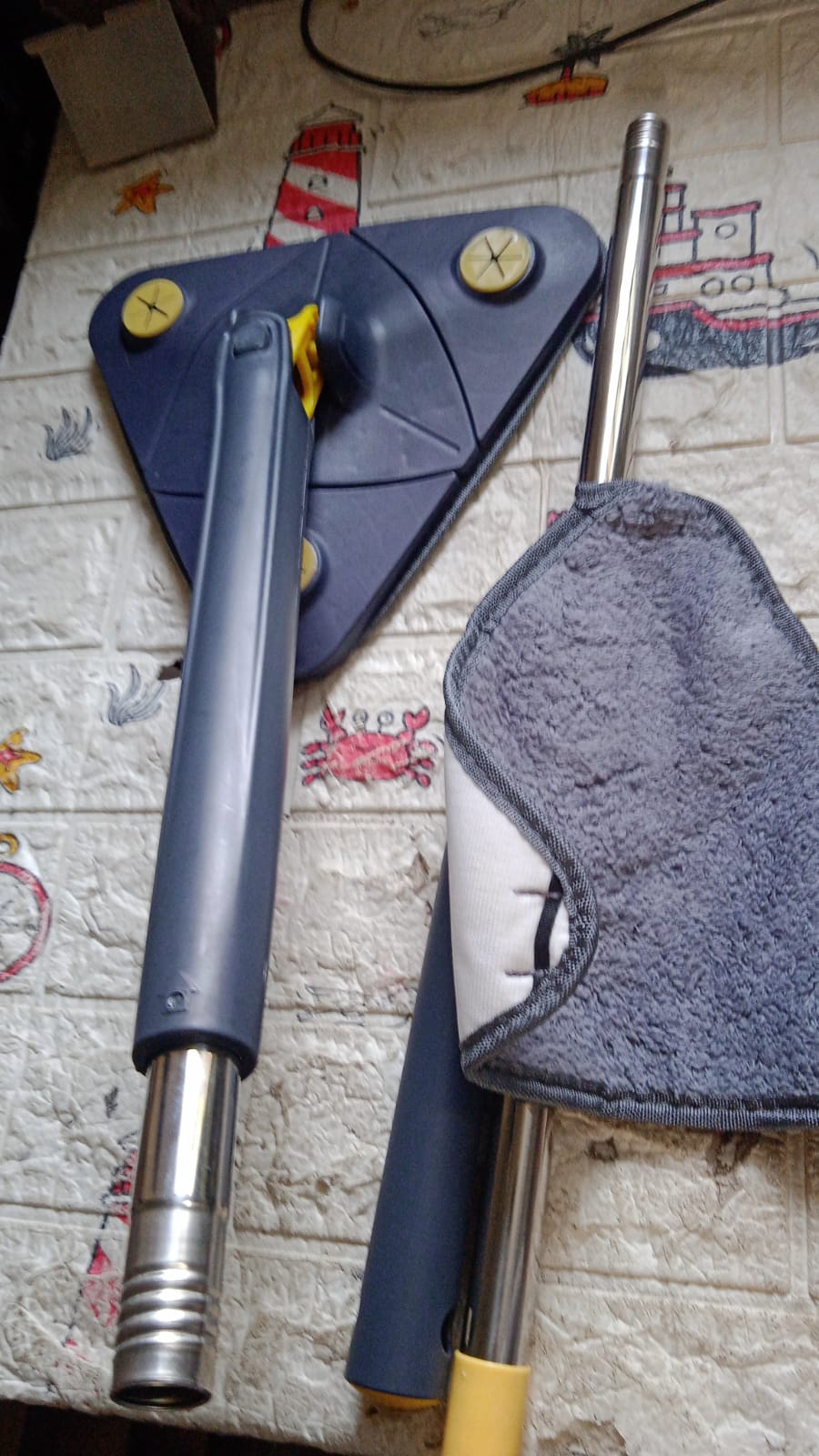 MULTIFUNCTIONAL DESIGN: The cleaning mop is designed in triangle shape and the dust mop head can rotate 360°. It is easy to clean and reach dead corners, such as sofa, bed, wall corners, ceiling corners and window corners. The mop has an efficient cleaning function for dust and hair, perfect for removing grease and dirt, so it also can be used for cleaning kitchens and shoes.