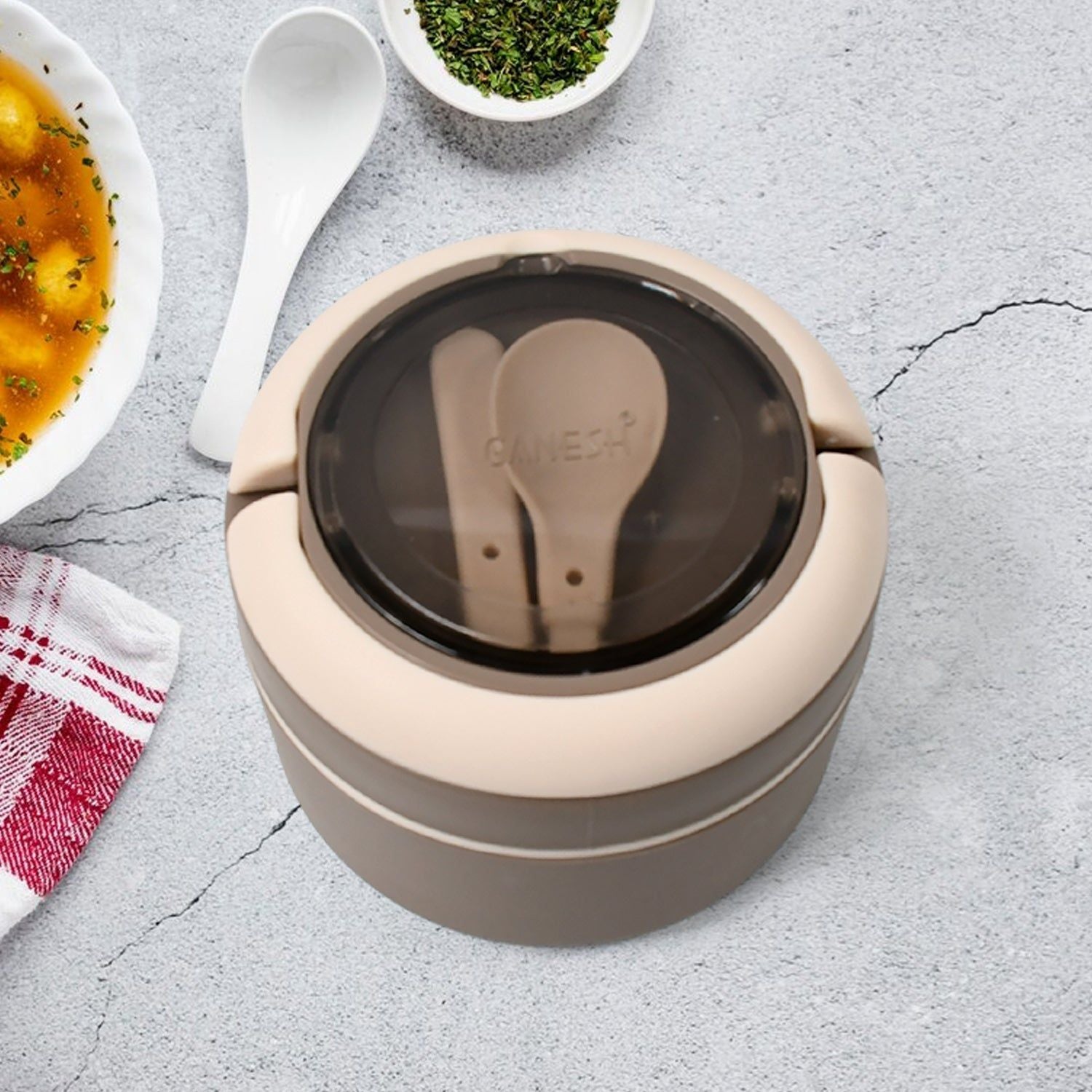 8716 Ganesh Cresta Food Insulated Airtight Leak-Proof Lunch Box With Spoon for Office, School, Picnic (1Pc)