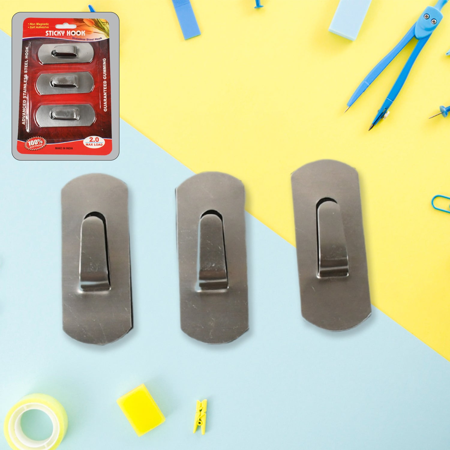 Self-Adhesive Hooks, Heavy Duty Wall Hooks Hangers Stainless Steel Waterproof Sticky Hooks for Hanging Robe Coat Towel Kitchen Bathroom and.